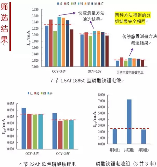 本項成果發(fā)明的鋰離子電池“漏電流”快速篩選技術(shù),能夠在4小時內(nèi)完成對電池模組內(nèi)電池“漏電流”指標(biāo)一致性的檢測,將電池按照自放電程度完成分組,快速剔除乏電池。