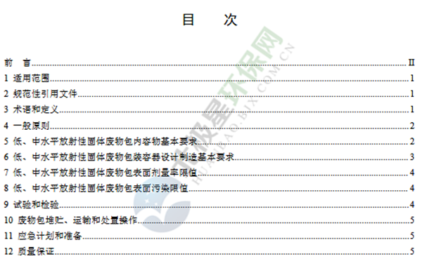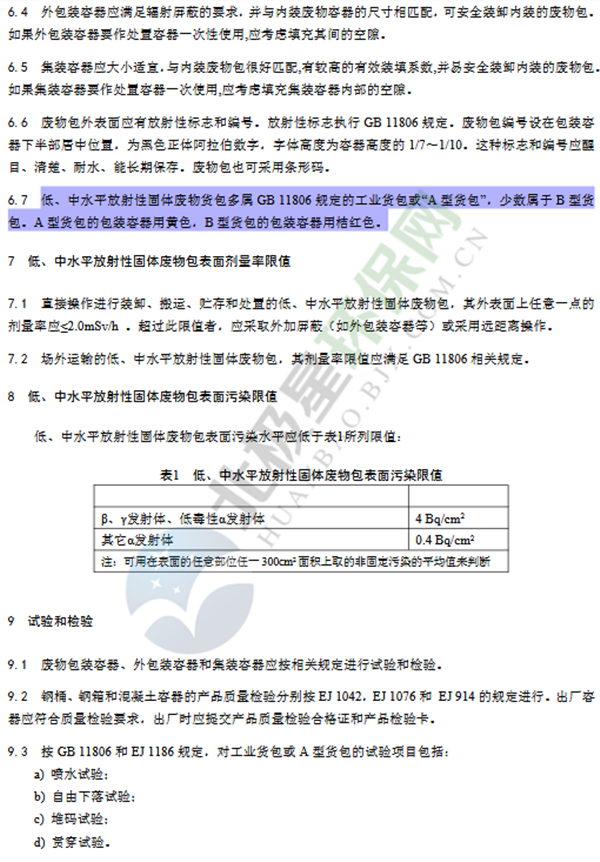 為貫徹《中華人民共和國環(huán)境保護(hù)法》《中華人民共和國放射性污染防治法》《中華人民共和國核安全法》,保護(hù)環(huán)境,保障人體健康,規(guī)范低、中水平放射性固體廢物安全管理,制定本標(biāo)準(zhǔn)。本標(biāo)準(zhǔn)規(guī)定了低、中水平放射性固體廢物包安全基本要求,包括低、中水平放射性固體包裝容器、外包裝(輻射屏蔽)容器和集裝容器的安全基本要求。