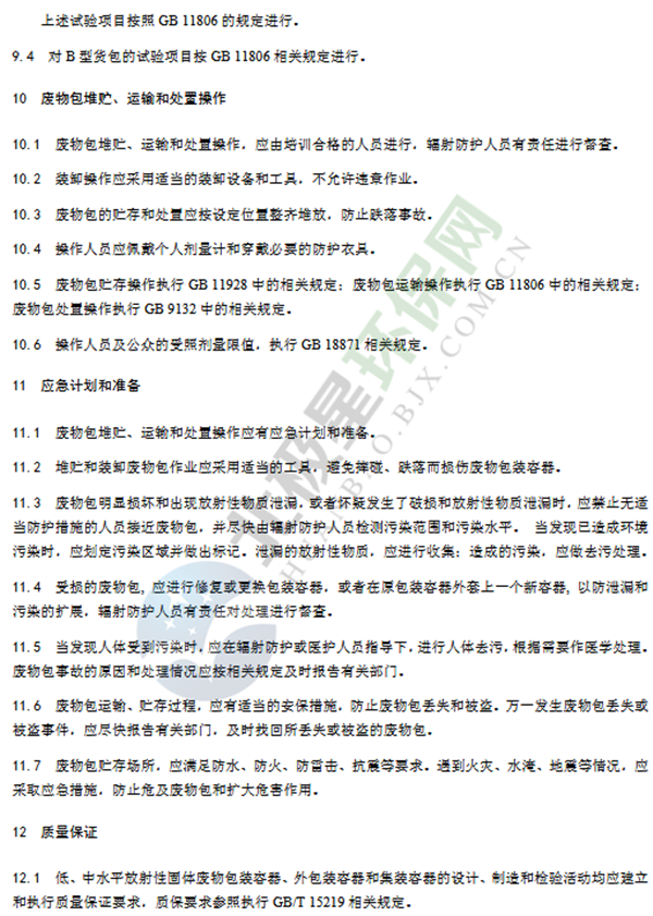 低、中水平放射性固體廢物包安全標(biāo)準(zhǔn)