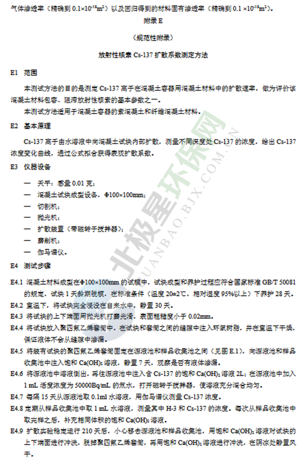 為貫徹《中華人民共和國環(huán)境保護(hù)法》《中華人民共和國放射性污染防治法》《中華人民共和國核安全法》,防治放射性污染,改善環(huán)境質(zhì)量,保護(hù)人體健康,制定本標(biāo)準(zhǔn)。低、中水平放射性廢物高完整性容器系列標(biāo)準(zhǔn)由三個(gè)不同材料制成的高完整性容器系列標(biāo)準(zhǔn)組成:—《低、中水平放射性廢物高完整性容器—球墨鑄鐵容器》(GB36900.1);—《低、中水平放射性廢物高完整性容器—混凝土容器》(GB36900.2);—《低、中水平放射性廢物高完整性容器—交聯(lián)高密度聚乙烯容器》(GB36900.3)。本標(biāo)準(zhǔn)為其中第二部分《低、中水平放射性廢物高完整性容器—混凝土容器》(GB36900.2),規(guī)定了用于包裝低、中水平放射性固體廢物所使用的混凝土高完整性容器(以下簡稱“混凝土容器”)的基本安全要求、產(chǎn)品性能要求、檢驗(yàn)方法、檢驗(yàn)規(guī)則、標(biāo)識和產(chǎn)品的貯存和運(yùn)輸要求。附錄A~G為規(guī)范性附錄。本標(biāo)準(zhǔn)為首次發(fā)布。