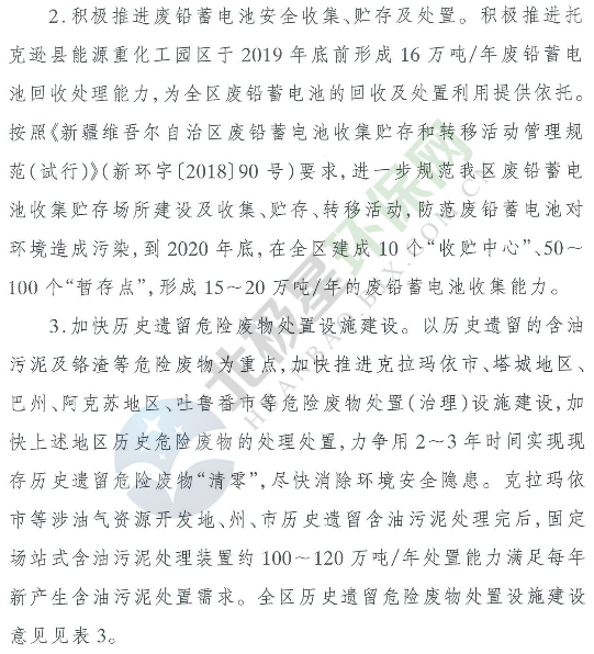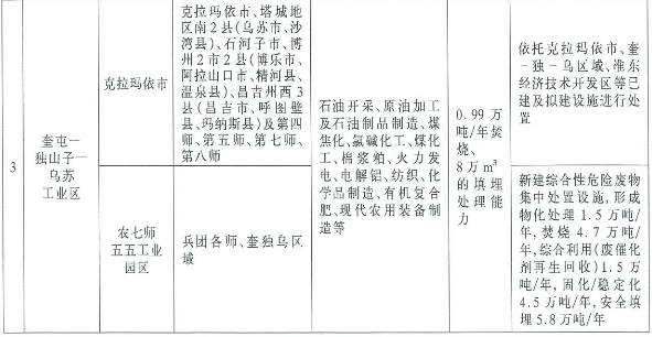 新疆提出,到2020年底,全區(qū)危險廢物集中處置利用能力達(dá)到200萬噸/年,2023年底達(dá)到230萬噸/年。