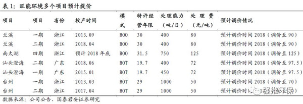 2)PPP降溫后,行業(yè)渡過低價競爭階段,新項(xiàng)目回報率提升,老項(xiàng)目處理費(fèi)提價。