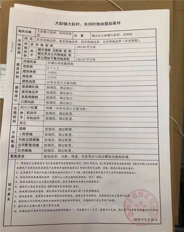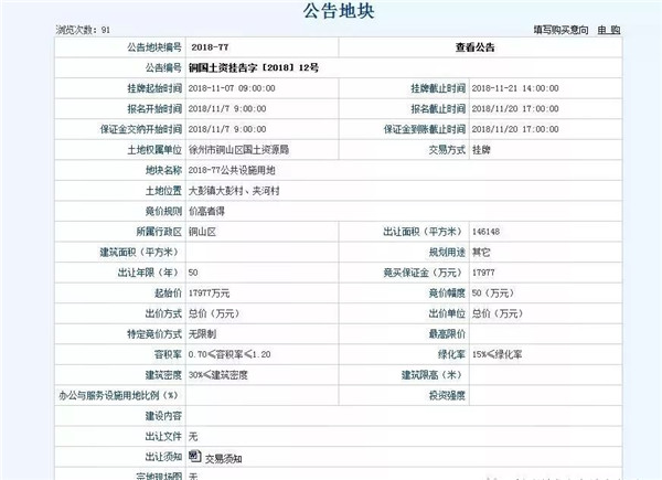 巧合的是,該幅地塊同徐州市銅山區(qū)國(guó)土資源局于10月18日發(fā)布的國(guó)有土地使用權(quán)掛牌出讓公告銅國(guó)土資掛告字[2018]12號(hào)中的2018-77地塊為同一地塊。