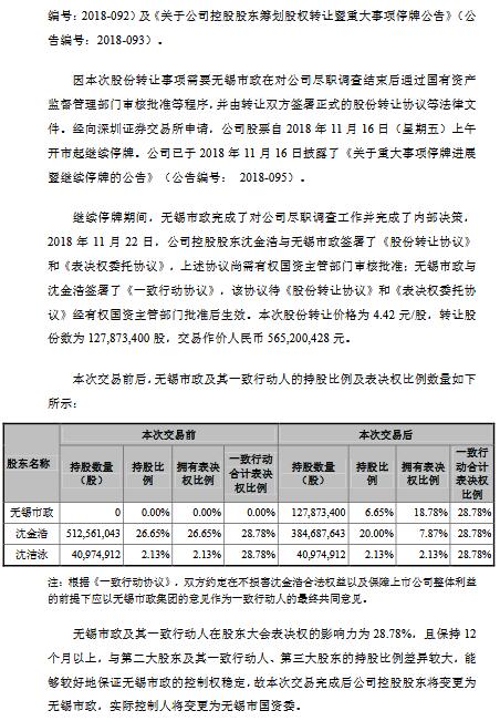 中金環(huán)境11月22日晚間公告,公司實際控制人沈金浩擬將1.28億股股份(占公司總股本的6.65%)轉(zhuǎn)讓給無錫市政,轉(zhuǎn)讓價格為4.42元/股,交易作價5.65億元。此外,沈金浩擬通過表決權(quán)委托方式將剩余股份中2.33億股股份對應(yīng)的表決權(quán)委托給無錫市政,占公司總股本的12.13%。交易完成后公司控股股東將變更為無錫市政,實際控制人將變更為無錫市國資委。公司股票將于11月23日復(fù)牌。
