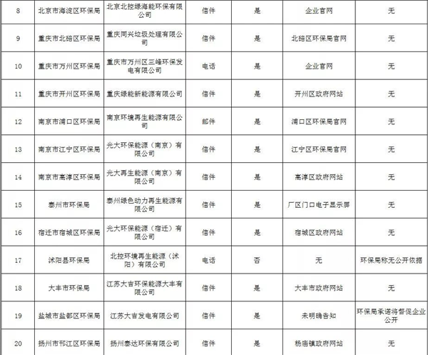 在此次回復(fù)中,有19個環(huán)保部門表示已督促焚燒廠在各省市企業(yè)自行監(jiān)測信息公開平臺公開了飛灰處置信息,如六安市環(huán)保局、臨安市環(huán)保局、長興縣環(huán)保局、四平市環(huán)保局、第八師石河子市環(huán)保局等。有49個環(huán)保部門表示已督促焚燒廠在各市環(huán)保局官網(wǎng)或政府網(wǎng)站公開飛灰處置信息,如杭州市余杭區(qū)環(huán)保局、重慶市北碚區(qū)環(huán)保局、大豐市環(huán)保局、廊坊市環(huán)保局等。在此,蕪湖生態(tài)中心給這68個環(huán)保部門打call。