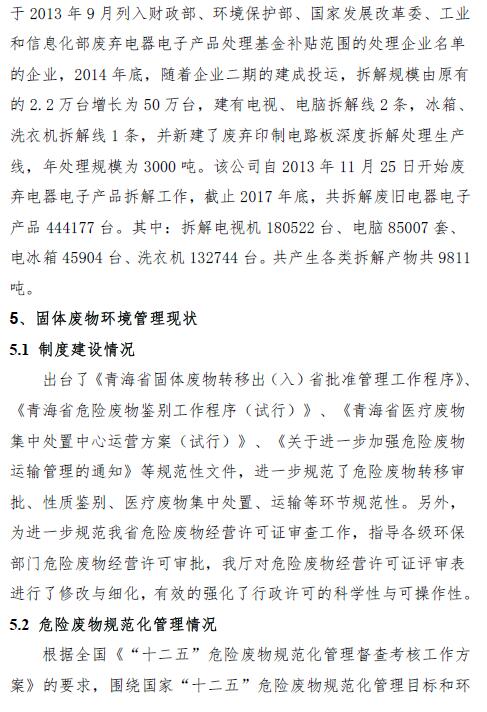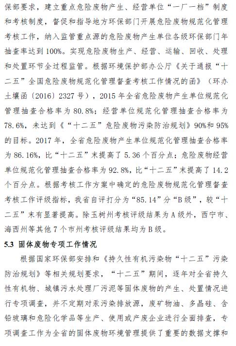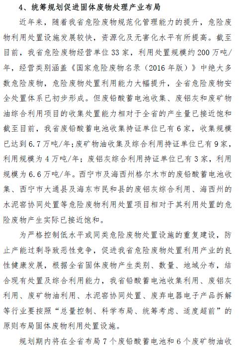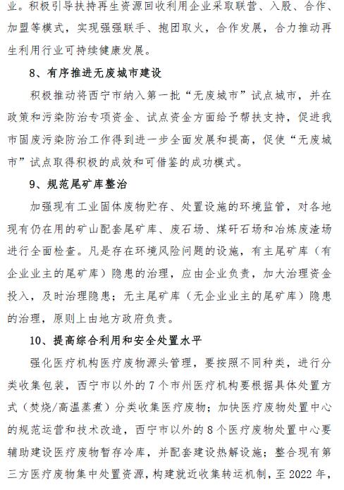 日前,青海印發(fā)《青海省固體廢物污染防治規(guī)劃(2018年-2022年)(征求意見稿)》。
