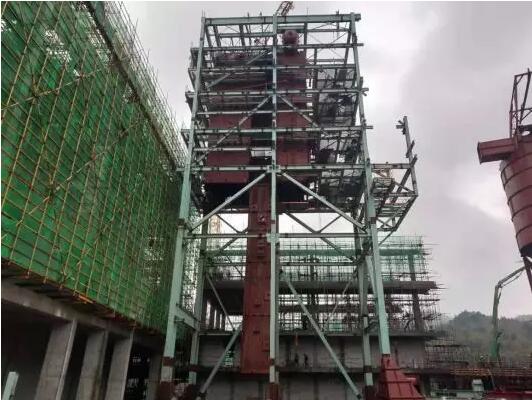 2、煙氣處理:消石灰制備罐體安裝;灰?guī)熘麂摌?gòu)安裝,筒體安裝,樓梯鋼架安裝完;