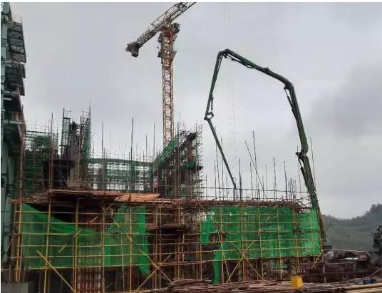 5、汽機(jī)房一期13.5米以上混凝土澆筑完,二期4米層混凝土澆筑完;門(mén)廳二層混凝土澆筑完;
