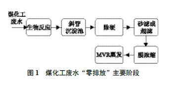 1零排放常見工藝隨著的收緊,國家對已建和新建的煤化工項目要求廢水“零排放”。雖然不同煤化工工藝產(chǎn)生的廢水性質(zhì)有所差異,但傳統(tǒng)處理煤化工廢水的工藝大多包括生物活性處理、化學沉淀、懸浮物過濾、膜濃縮產(chǎn)水回用和蒸發(fā)固化等。圖1 為煤化工廢水“零排放”主要階段示意。膜濃縮和蒸發(fā)結(jié)晶工藝對進水硬度有嚴格要求,...