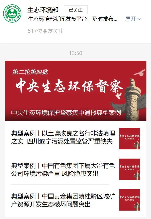 壹中央生態(tài)環(huán)保督察通報7起典型案例中央生態(tài)環(huán)保督察又通報典型案例了。9月6日下午,中央生態(tài)環(huán)保督察集中通報典型案例,對第二輪第四批督察發(fā)現(xiàn)的首批7起典型案例進行集中公開通報。在這一批督察中,共組建了7個督察組,分別對吉林、山東、湖北、廣東、四川5個省,以及中國有色礦業(yè)集團有限公司、中國黃金集團有限公...