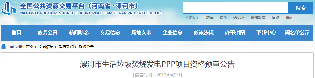 中國(guó)環(huán)聯(lián)網(wǎng)獲悉,4月19日,河南濮陽(yáng)南樂(lè)縣生活垃圾焚燒熱電PPP項(xiàng)目發(fā)布資格預(yù)審公告,采購(gòu)控制價(jià)為每噸垃圾補(bǔ)貼費(fèi)不超過(guò)62.87元。項(xiàng)目概況及采購(gòu)內(nèi)容項(xiàng)目名稱(chēng):南樂(lè)縣生活垃圾焚燒熱電PPP項(xiàng)目。項(xiàng)目編號(hào):HNTZL-2019-016采購(gòu)方式:公開(kāi)招標(biāo)。項(xiàng)目概況:本項(xiàng)目設(shè)計(jì)日處理垃圾量為600噸/日,...