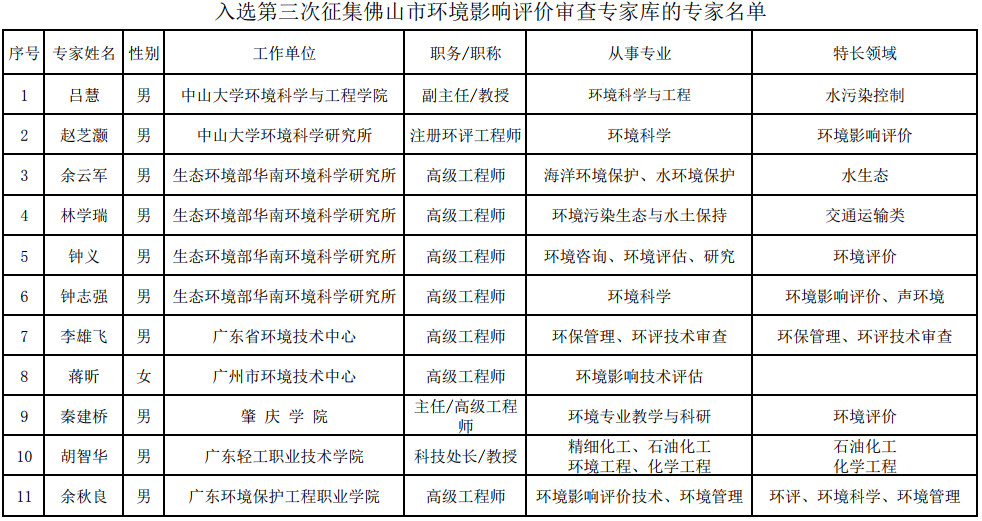佛山生態(tài)環(huán)境局發(fā)布了關(guān)于第三次征集佛山市環(huán)境影響評價審查專家?guī)鞂<胰脒x名單的公示,全文如下:為進一步規(guī)范和完善我市環(huán)境影響評價文件的審查,發(fā)揮專家在建設(shè)項目環(huán)境影響評價和規(guī)劃環(huán)評文件審查中的技術(shù)把關(guān)作用,提高審查質(zhì)量和效率,我局?jǐn)M第三次征集佛山市環(huán)境影響評價審查專家?guī)鞂<?,?jīng)征集、遴選、審查,現(xiàn)將入...