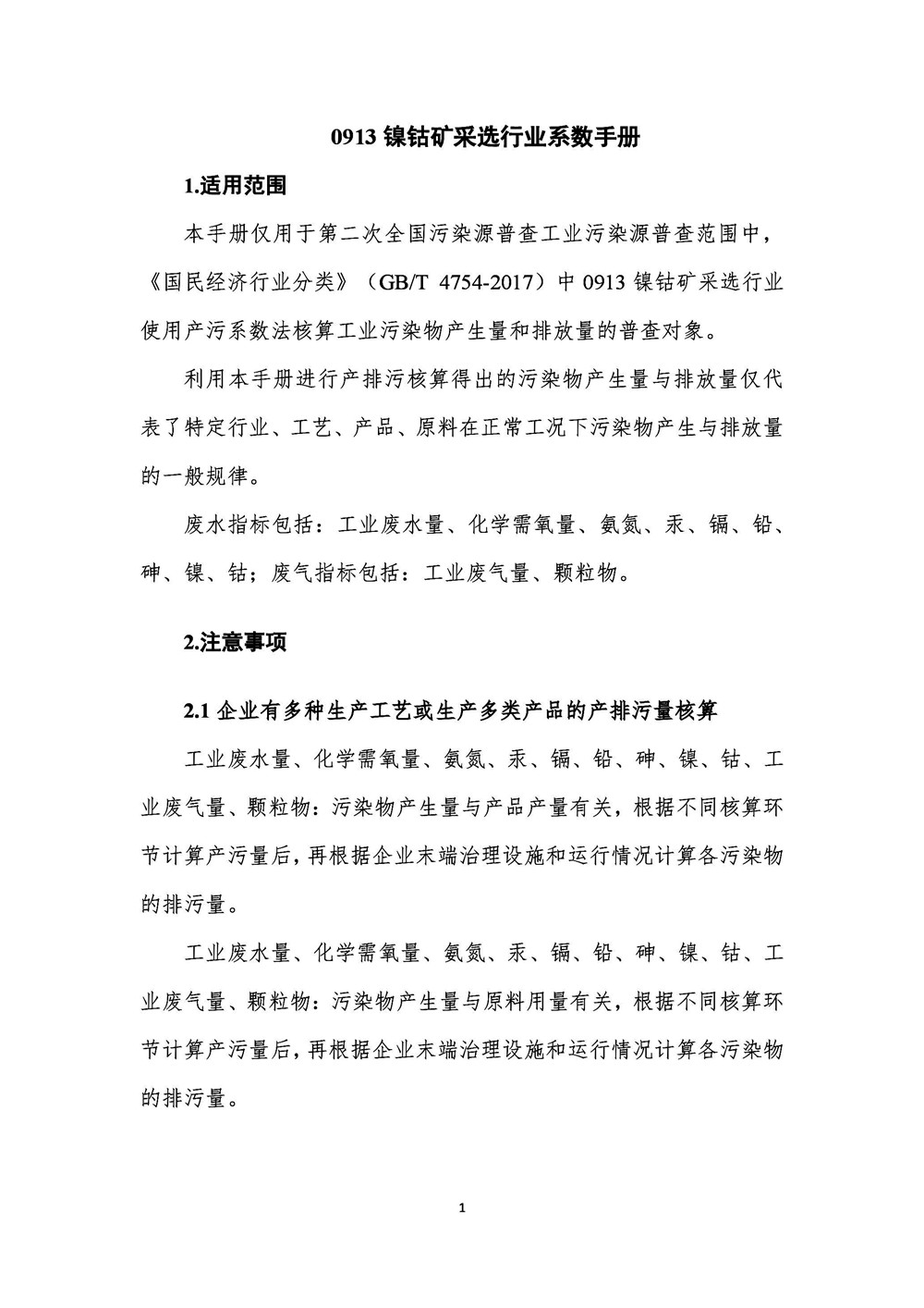 導(dǎo)讀:第二次全國污染源普查 鎳鈷礦采選行業(yè)系數(shù)手冊(初稿) 本手冊僅用于第二次全國污染源普查工業(yè)污染源普查范圍中,《國民經(jīng)濟行業(yè)分類》(GB/T 4754-2017)中0913鎳鈷礦采選行業(yè)使用產(chǎn)污系數(shù)法核算工業(yè)污染物產(chǎn)生量和排放量的普查對象。利用本手冊進行產(chǎn)排污核算得出的污染物產(chǎn)生量與排放量僅代表...