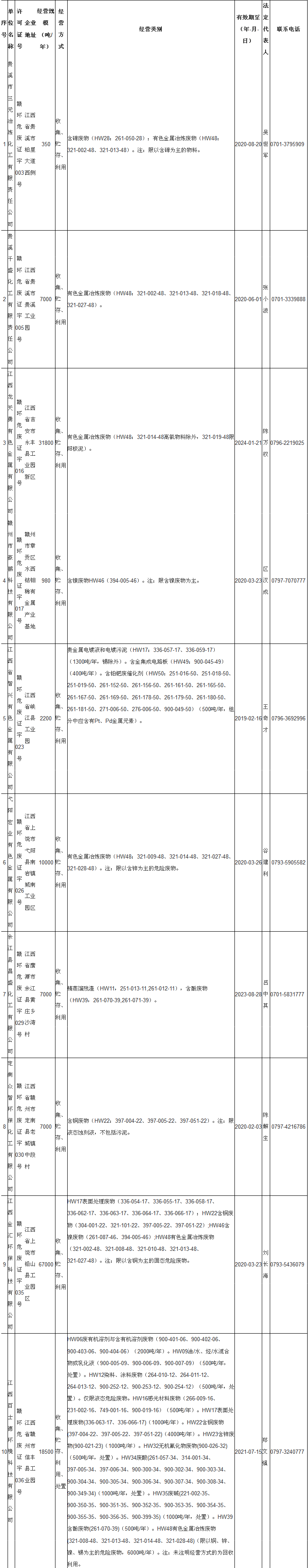 日前江西省生態(tài)環(huán)境廳發(fā)布了危險廢物經(jīng)營許可證名單,其中涉及69家公司,具體內(nèi)容如下: