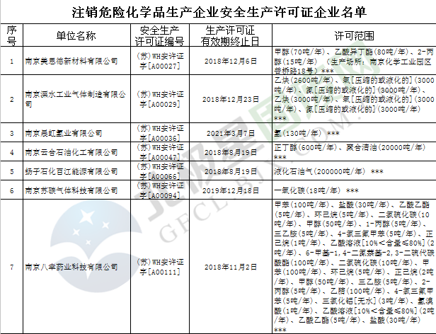 近日,江蘇省應(yīng)急管理廳發(fā)布2019年第3號公告,公布199家危險化學品生產(chǎn)企業(yè)安全生產(chǎn)許可證被注銷,詳情如下:截止2019年1月11日,全省共有南京美思德新材料有限公司等199家危險化學品生產(chǎn)企業(yè)(見附件)的《危險化學品生產(chǎn)企業(yè)安全生產(chǎn)許可證》不在有效期內(nèi),或者在有效期內(nèi)不再從事危險化學品生產(chǎn)活動的...