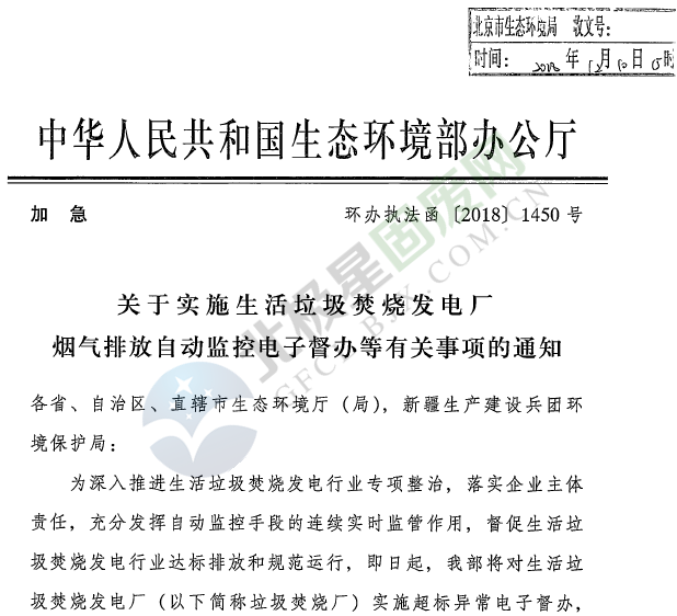日前生態(tài)環(huán)境部辦公廳下發(fā)了加急通知:《關(guān)于實施生活垃圾焚燒發(fā)電廠煙氣排放自動監(jiān)控電子督辦等有關(guān)事項的通知》,通知提到,即日起(發(fā)文之日起)生態(tài)環(huán)境部將對生活垃圾焚燒發(fā)電廠實施超標異常電子督辦。各地應(yīng)督促垃圾焚燒廠對焚燒系統(tǒng)公開和自動監(jiān)測異常情況進行主動標記。針對突出問題進行重點督辦,對2018年11...