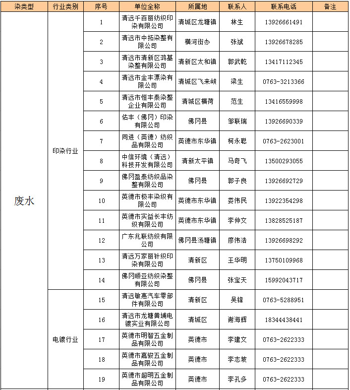 廣東省清遠(yuǎn)市發(fā)布清遠(yuǎn)市2019年重點(diǎn)排污單位。共有重點(diǎn)排污單位82家,涉及廢水、廢氣、有色金屬等。詳情如下: