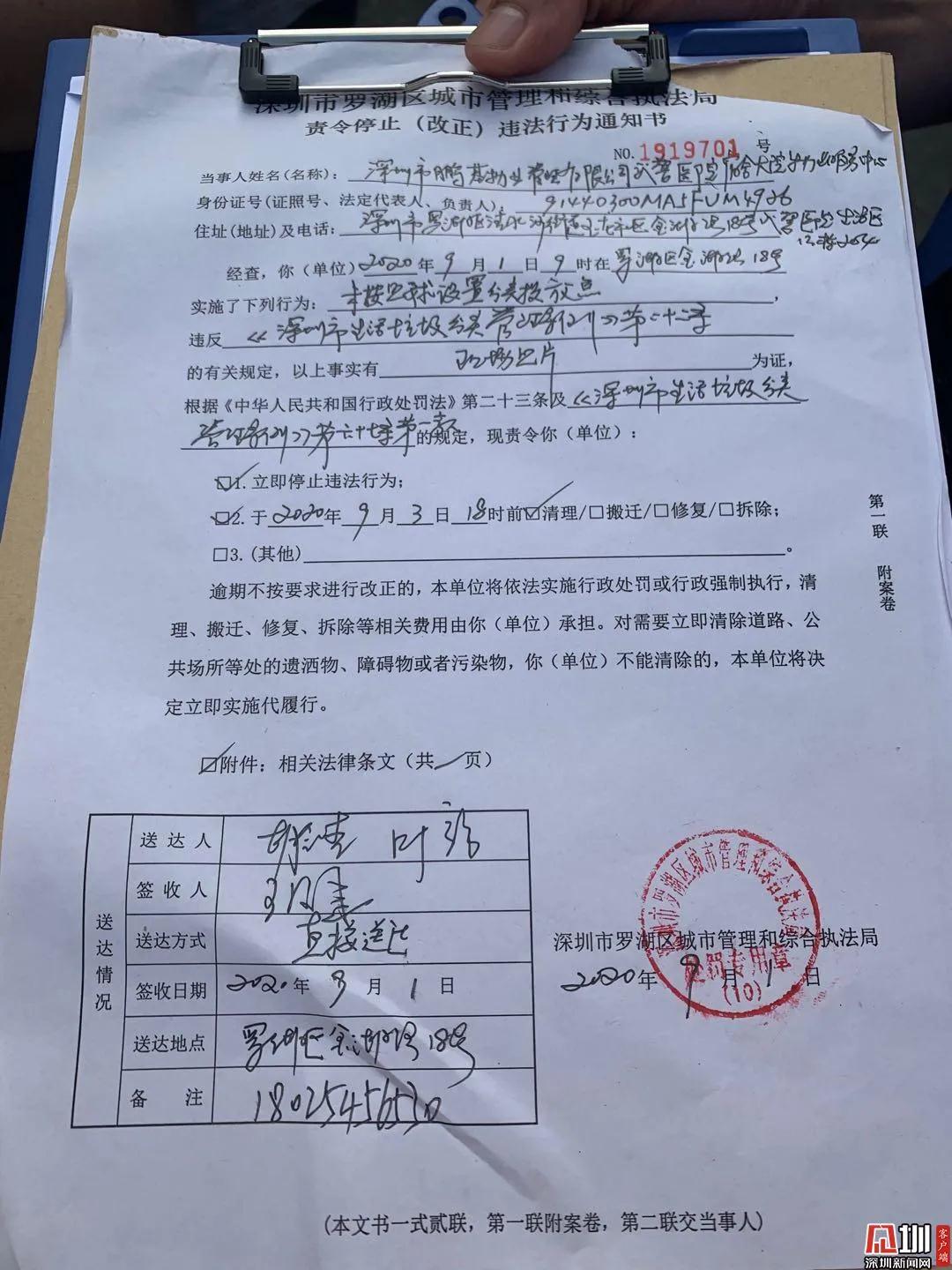9月1日是《深圳市生活垃圾分類管理?xiàng)l例》實(shí)施的第一天,垃圾分類執(zhí)法檢查也同步啟動(dòng)。早上,深圳市城管執(zhí)法人員就出動(dòng)了。早上8時(shí)34分,在羅湖區(qū)的銀龍花園,深圳市城管和綜合執(zhí)法局聯(lián)合清水河街道執(zhí)法隊(duì)開(kāi)出了首張責(zé)令整改通知書(shū),小區(qū)的垃圾桶沒(méi)有集中擺放,包括大件垃圾沒(méi)有及時(shí)清運(yùn)?!钲谑谐枪軋?zhí)法人員來(lái)到羅湖...