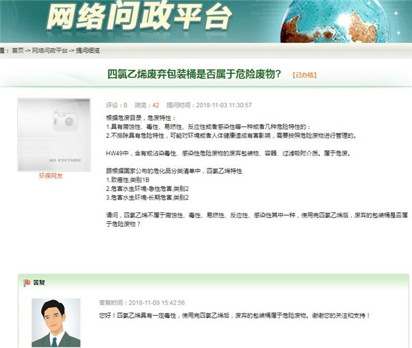 四氯乙烯廢棄包裝桶是否屬于危險(xiǎn)廢物?根據(jù)危廢目錄,危廢特性:1.具有腐蝕性、毒性、易燃性、反應(yīng)性或者感染性等一種或者幾種危險(xiǎn)特性的;2.不排除具有危險(xiǎn)特性,可能對(duì)環(huán)境或者人體健康造成有害影響,需要按照危險(xiǎn)廢物進(jìn)行管理的。HW49中,含有或沾染毒性、感染性危險(xiǎn)廢物的廢棄包裝物、容器、過濾吸附介質(zhì)。屬于...