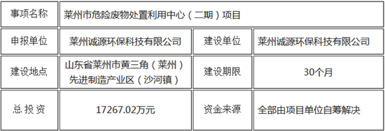 日前煙臺(tái)市發(fā)展和改革委員會(huì)發(fā)布了《關(guān)于萊州市危險(xiǎn)廢物處理中心(一期)項(xiàng)目核準(zhǔn)前公示核準(zhǔn)前公示》,公示顯示該項(xiàng)目地址位于山東省萊州市黃三角(萊州)先進(jìn)制造產(chǎn)業(yè)區(qū)(沙河鎮(zhèn)),建設(shè)內(nèi)容包括罐區(qū)、固化暫存庫(kù)、綜合利用暫存庫(kù)、物化車間、綜合利用車間、固化車間(化驗(yàn)室)、廢氣處理車間、污水處理站等??偼顿Y105...