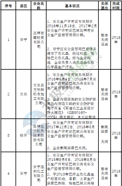 日前云南省應(yīng)急管理廳發(fā)布了印發(fā)危險(xiǎn)化學(xué)品安全工程三年行動(dòng)計(jì)劃有關(guān)企業(yè)名單,明確關(guān)閉退出、就地改造、綜合整治的危險(xiǎn)化學(xué)品生產(chǎn)(儲(chǔ)存)企業(yè)名單。對91戶危險(xiǎn)化學(xué)品生產(chǎn)(儲(chǔ)存)企業(yè)和部分生產(chǎn)裝置,雖不在城鎮(zhèn)人口密集區(qū),但由于不符合產(chǎn)業(yè)政策、不具備基本安全生產(chǎn)條件且無法整改的,實(shí)施關(guān)閉退出。對37戶內(nèi)部安全...