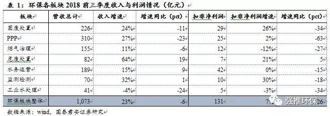 摘要危廢、固廢與監(jiān)測板塊維持強(qiáng)勁增長2018前三季度環(huán)保行業(yè)整體①營業(yè)收入1073億元,同比增長23%,增速同比回落6pct,Q3單季收入391億元,同比增15%;②前三季度環(huán)保板塊實(shí)現(xiàn)扣非凈利潤131億元,同比增7%,增速同比回落26pct,Q3單季扣非凈利潤50億元,同比增1%,增速回落29pc...
