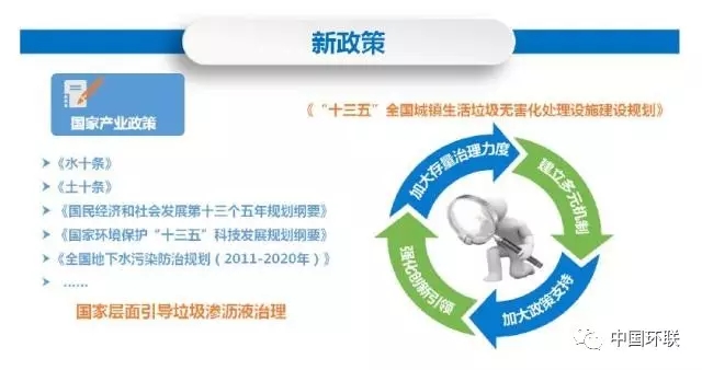 一、垃圾滲瀝液處理現(xiàn)狀新政策《全國地下水污染防治規(guī)劃(2011-2020年)》、《水十條》、《國民經(jīng)濟(jì)和社會發(fā)展第十三個五年規(guī)劃綱要》、《國家環(huán)境保護(hù)“十三五”科技發(fā)展規(guī)劃綱要》中均明確指出對于城鎮(zhèn)生活垃圾填埋場要及時開展?jié)B瀝液引流,做好垃圾滲瀝液處理處置、開發(fā)地下水源地污染源控制技術(shù)工作。新形勢垃...