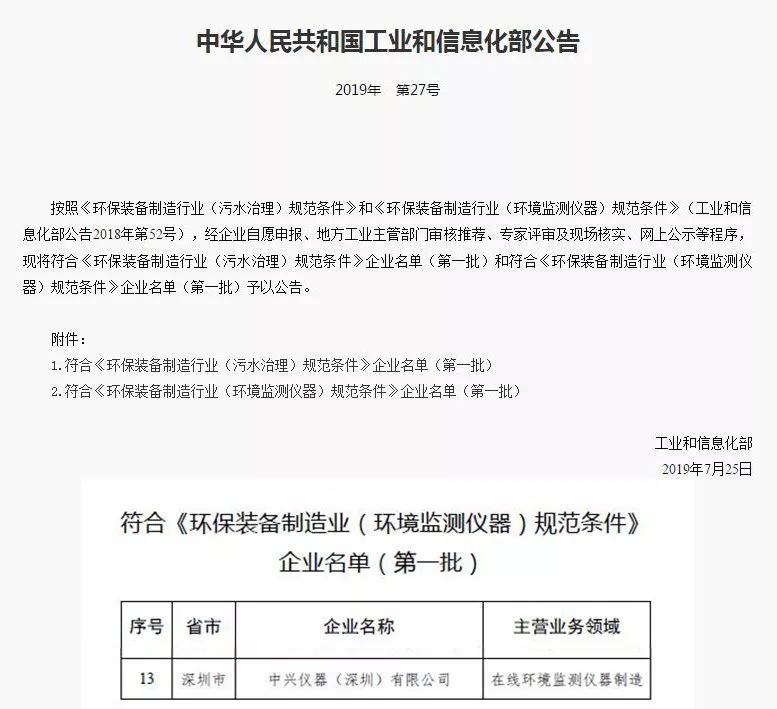 近日,中興儀器(深圳)有限公司(以下簡稱“中興儀器”)上榜首批符合“環(huán)保裝備制造業(yè)(環(huán)境監(jiān)測儀器)規(guī)范條件”企業(yè)名單。此評選活動由中華人民共和國工業(yè)和信息化部舉辦,通過地方工業(yè)主管部門審核推薦、專家評審及現場核實、網上公示等程序。 作為領先的生態(tài)環(huán)境與...