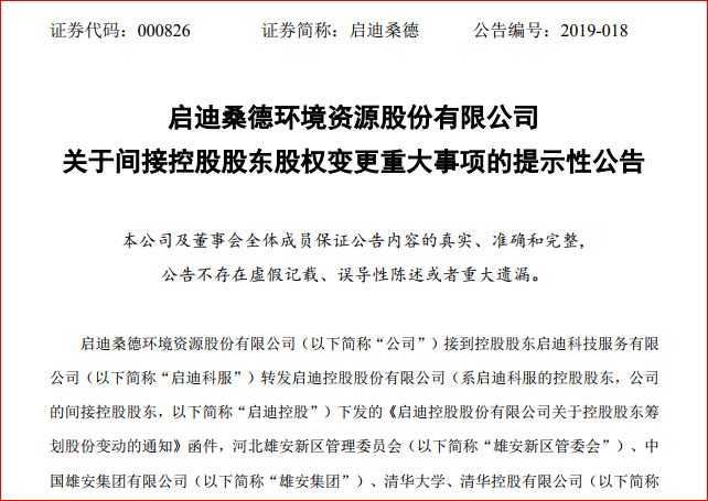 啟迪桑德(000826)、啟迪古漢(000590)3月21日早間雙雙發(fā)布公告顯示,啟迪桑德和啟迪古漢均接到控股股東啟迪科服轉發(fā)啟迪控股(系啟迪科服的控股股東,兩家公司的間接控股股東)下發(fā)的《啟迪控股股份有限公司關于控股股東籌劃股份變動的通知》函件,雄安新區(qū)管委會、雄安集團、清華大學、清華控股及啟迪控...