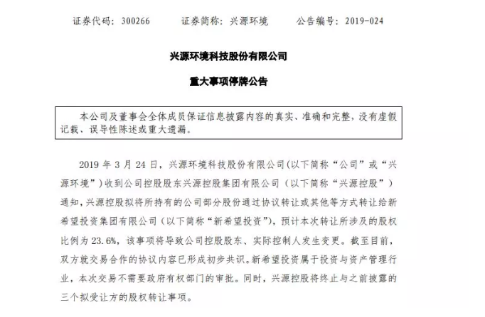 興源控股擬將所持有的公司部分股份通過協議轉讓或其他等方式轉讓給新希望投資集團有限公司,預計本次轉讓所涉及的股權比例為23.6%,該事項將導致公司控股股東、實際控制人發(fā)生變更。據悉,新希望投資是新希望集團旗下的投資平臺。新希望集團創(chuàng)始人劉永好,曾獲得中國改革風云人物等稱號,幾次榮登中國首富的位置。 今...