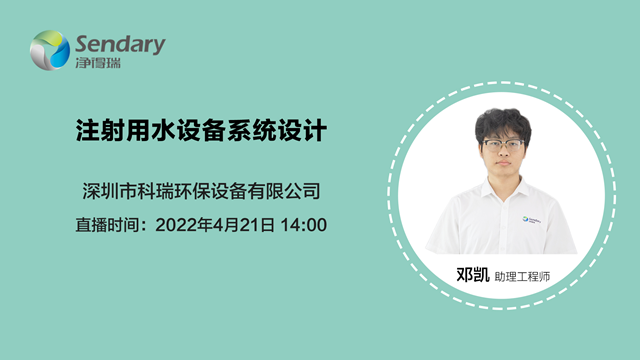 注射用水設(shè)備系統(tǒng)設(shè)計(jì)需要考慮哪些因素?如何做好URS分析?注射用水要滿足什么法規(guī)?設(shè)計(jì)基礎(chǔ)及系統(tǒng)工藝又有哪些?4月21號(hào)下午14:00,凈得瑞將為大家?guī)?lái)專(zhuān)場(chǎng)直播講座:《注射用水設(shè)備系統(tǒng)設(shè)計(jì)》進(jìn)行解惑。圖一 《注射用水設(shè)備系統(tǒng)設(shè)計(jì)》點(diǎn)擊圖片進(jìn)入直播間 直播由凈得瑞助理工程師鄧凱在線分享,歡迎大家鎖定...