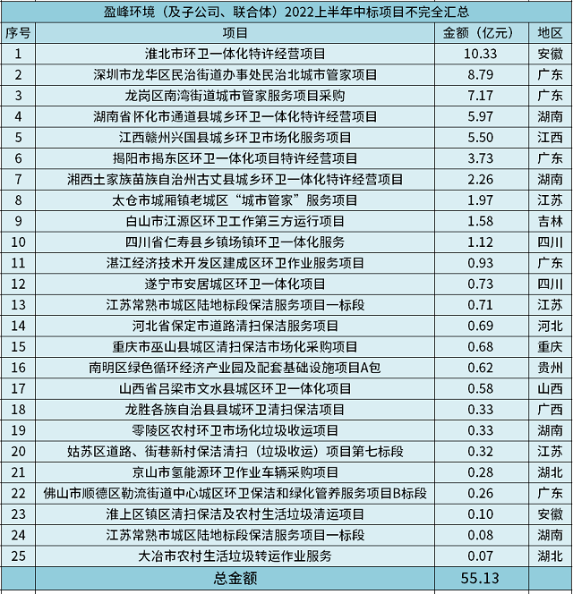 2022年上半年,國內(nèi)環(huán)衛(wèi)市場依舊風(fēng)云變幻。既頻頻掉落10億級項(xiàng)目,又有環(huán)衛(wèi)與物業(yè)的新老玩家之爭,更有40進(jìn)1、16進(jìn)1、10進(jìn)1等“奪標(biāo)戰(zhàn)”引關(guān)注。而就在激烈的交鋒中,盈峰環(huán)境作為作為頭部環(huán)衛(wèi)企業(yè)之一,亦有著搶眼表現(xiàn)。 據(jù)環(huán)保在線不完全統(tǒng)計,截至6月底,盈峰環(huán)境中標(biāo)二十余個...