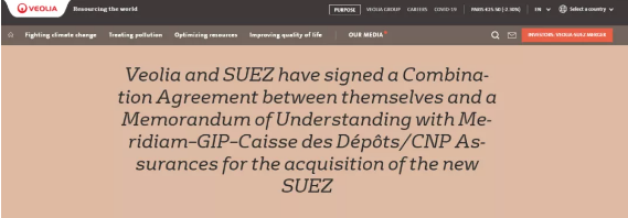 據(jù)悉,威立雅與蘇伊士的收購談判最近又出現(xiàn)了新的進展。 上周五晚間,威立雅與蘇伊士在巴黎簽署了關(guān)于“以合并為目的的和解”的協(xié)議。在協(xié)議中,威立雅同意以每股20.50歐元的價格收購蘇伊士股份,這意味著蘇伊士的市值達到了128億歐元。這個價格設(shè)定較高,威立雅目前期望能夠在今年第三季...