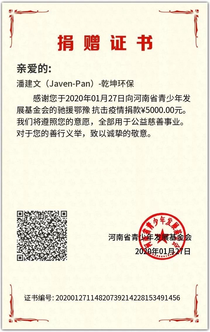 全國(guó)人民在黨中央的堅(jiān)強(qiáng)領(lǐng)導(dǎo)下打響了新冠肺炎疫情阻擊戰(zhàn),發(fā)生了許多可歌可泣的感人事跡。無(wú)數(shù)企業(yè)捐錢(qián)捐物,有錢(qián)出錢(qián)無(wú)錢(qián)出力眾志成城,共克時(shí)艱。 作為一家擁有高度社會(huì)責(zé)任感的環(huán)保企業(yè),乾坤環(huán)保股份有限公司(下文簡(jiǎn)稱(chēng)“乾坤環(huán)保”)連續(xù)多次捐贈(zèng)防疫物資,履行社會(huì)責(zé)任,為打贏這場(chǎng)沒(méi)有硝煙...
