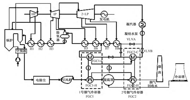應(yīng)用蒸汽相變技術(shù)與氟塑料換熱器,設(shè)計(jì)了協(xié)同顆粒物脫除和水分回收的電站鍋爐煙氣余熱利用系統(tǒng)。系統(tǒng)在脫硫塔進(jìn)、出口設(shè)置兩級間接傳熱式煙氣冷卻器,氟塑料換熱器吸收的排煙余熱通過閉式循環(huán)水和板式換熱器傳遞給凝結(jié)水。一級煙氣冷卻器降低脫硫塔入口煙溫以減小脫硫水耗,二級煙氣冷卻器冷凝煙氣中的水蒸氣并脫除煙氣中的...