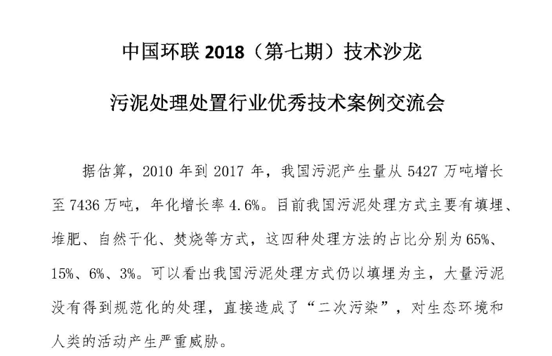 為深入剖析市政污泥處理處置主流技術(shù)及裝備發(fā)展關(guān)鍵需求,推進(jìn)污泥資源化利用的技術(shù)完善與行業(yè)可持續(xù)發(fā)展,2018年7月27日,由中國(guó)戰(zhàn)略性新興產(chǎn)業(yè)環(huán)保聯(lián)盟(簡(jiǎn)稱“中國(guó)環(huán)聯(lián)”)主辦的2018(第七期)技術(shù)沙龍—污泥處理處置行業(yè)典型技術(shù)案例交流會(huì)今日在上海如期舉行。來自高校、科研院所和企業(yè)的專家代表等70余...
